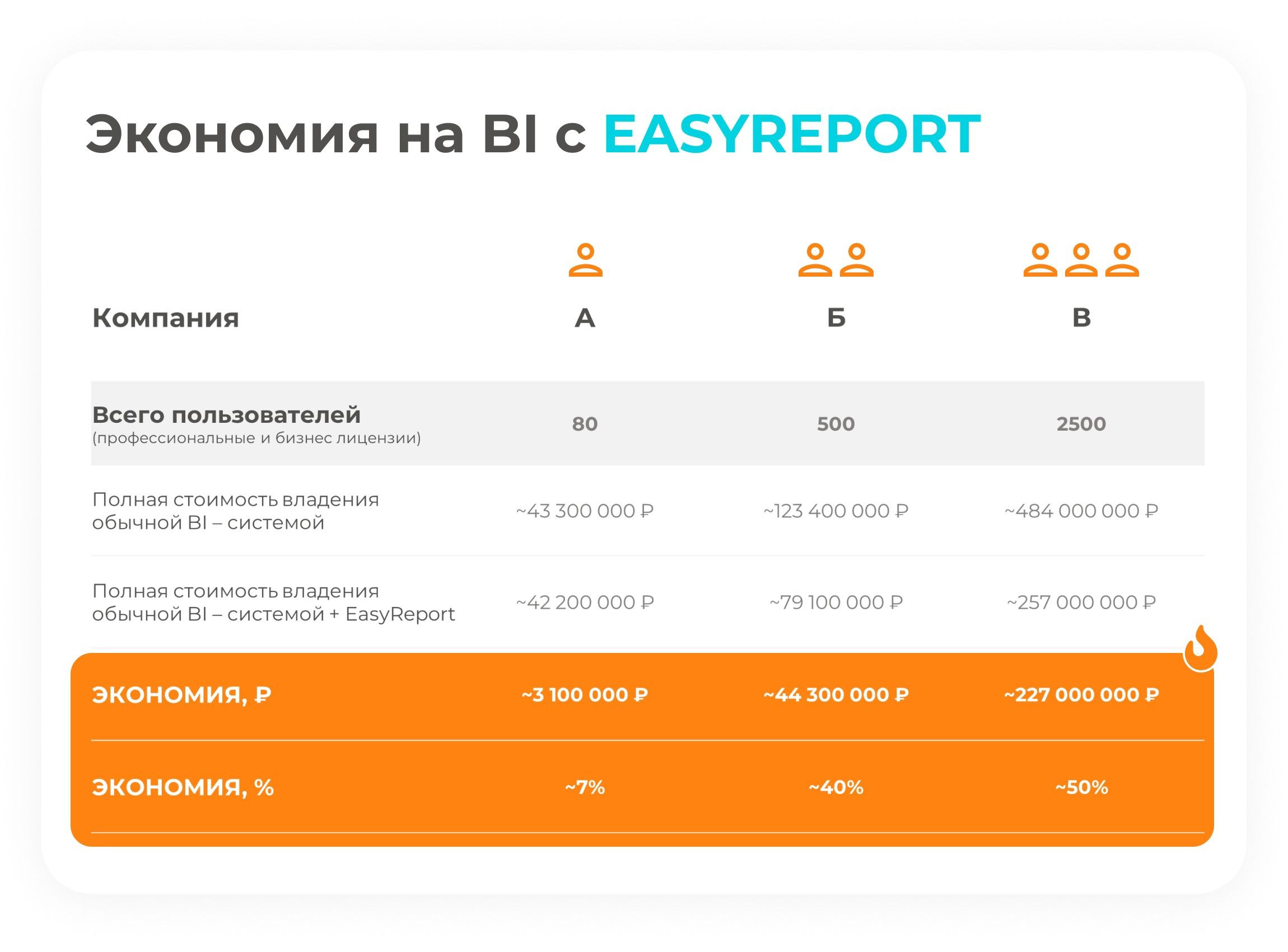 Количество пользователей не меняется. Мы просто заменяем все бизнес-лицензии обычной BI-системы на лицензии Easy Report.