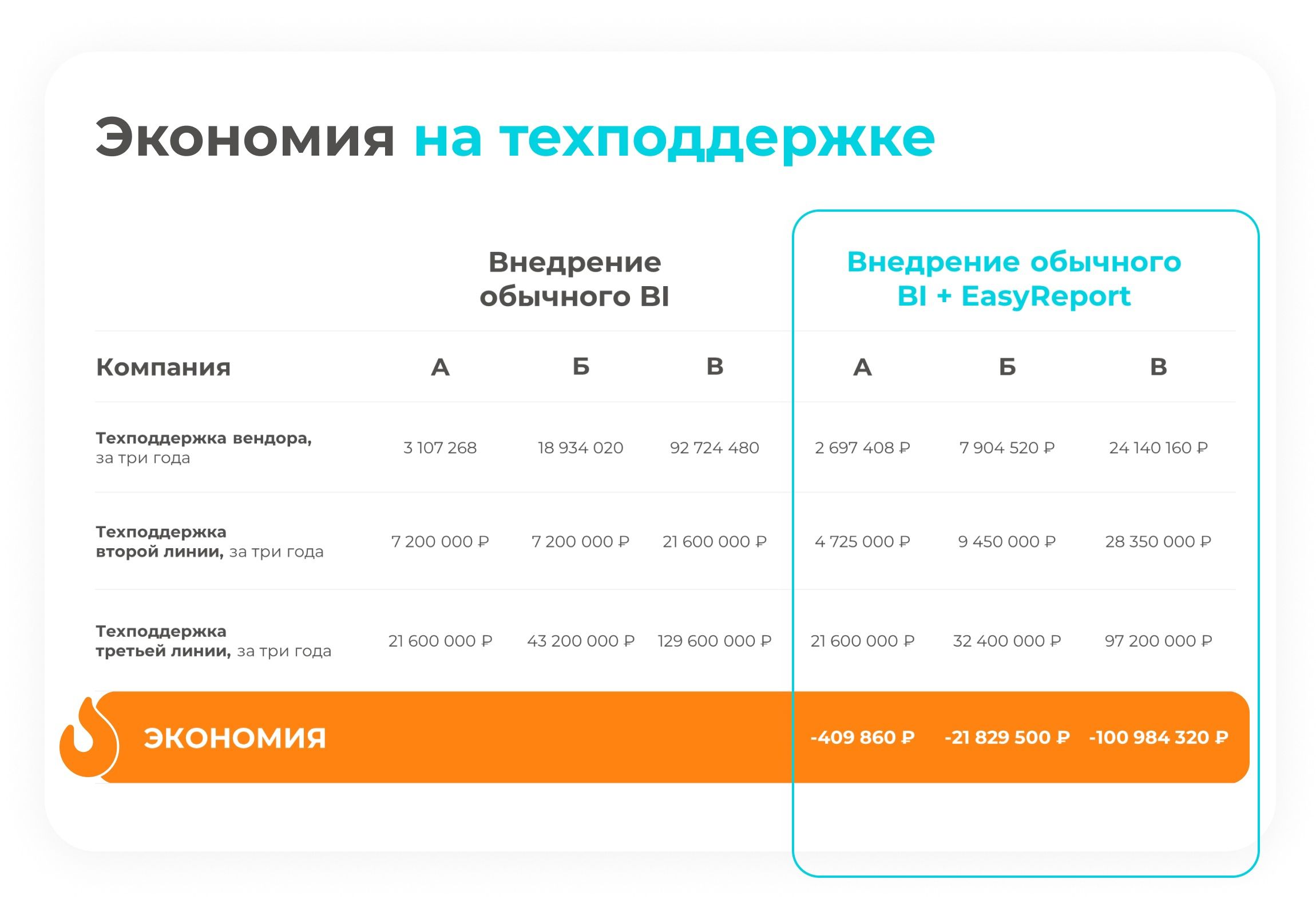 Easy Report – это простое решение, которому не требуется столько часов техподдержки, как обычной BI-системе.